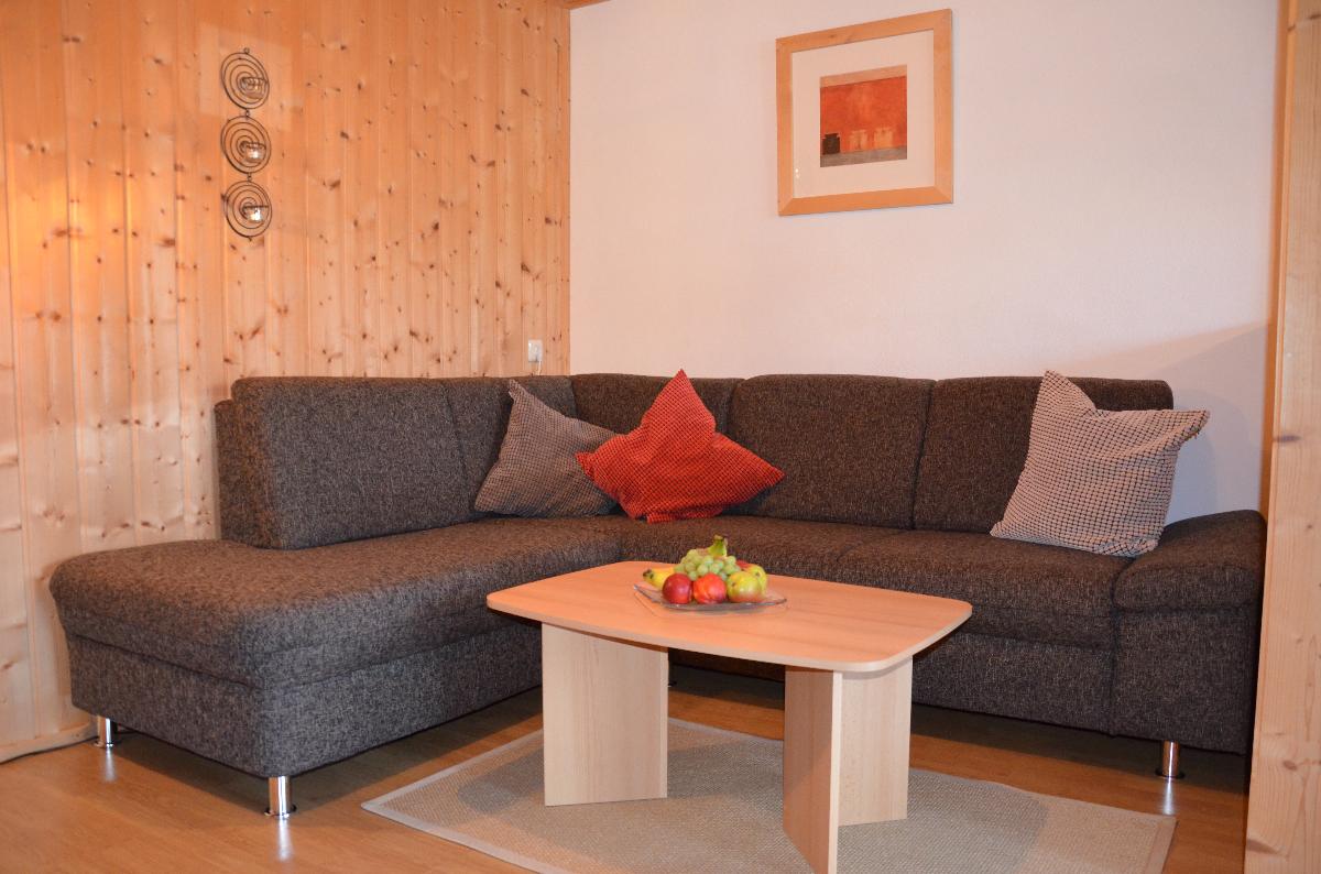 Ferienwohnung komplett eingerichtet, 1 Schlafzimmer, Wohnküche mit Essgarnitur und Couchgarnitur, Dusche WC. Überdachter Balkon nach Süden gerichtet. Parkplatz