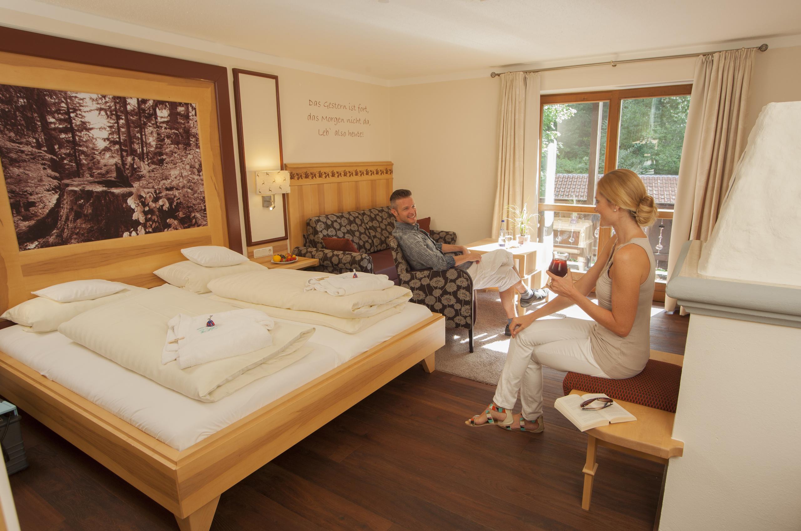 ca. 40 qm, geeignet für 1-4 Personen, Dusche, sep. WC, Kosmetikspiegel, Föhn, Radio, Sat-TV, Minibar, Safe, Telefon, Kachelofen, Terrasse, Betten: 1,80 x 2,10 m