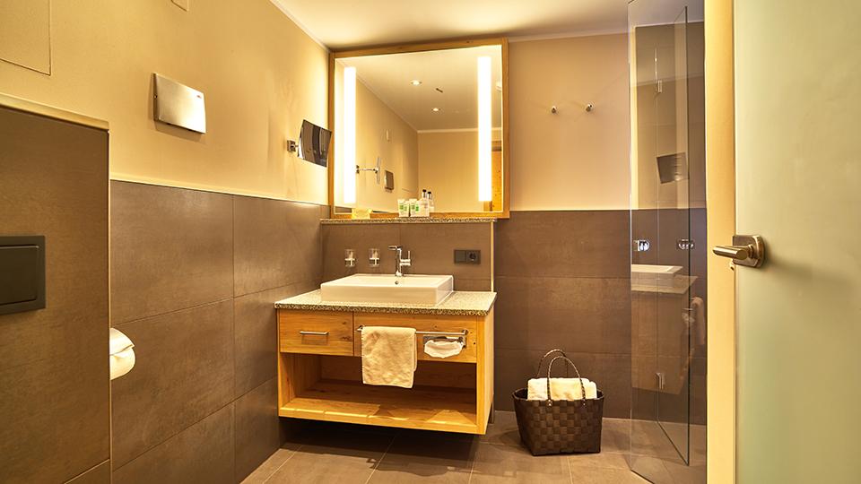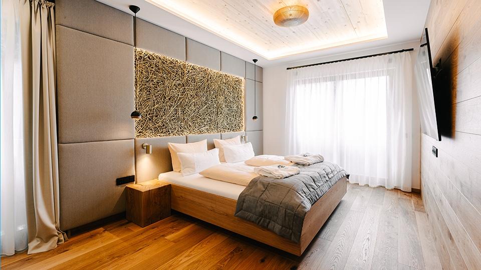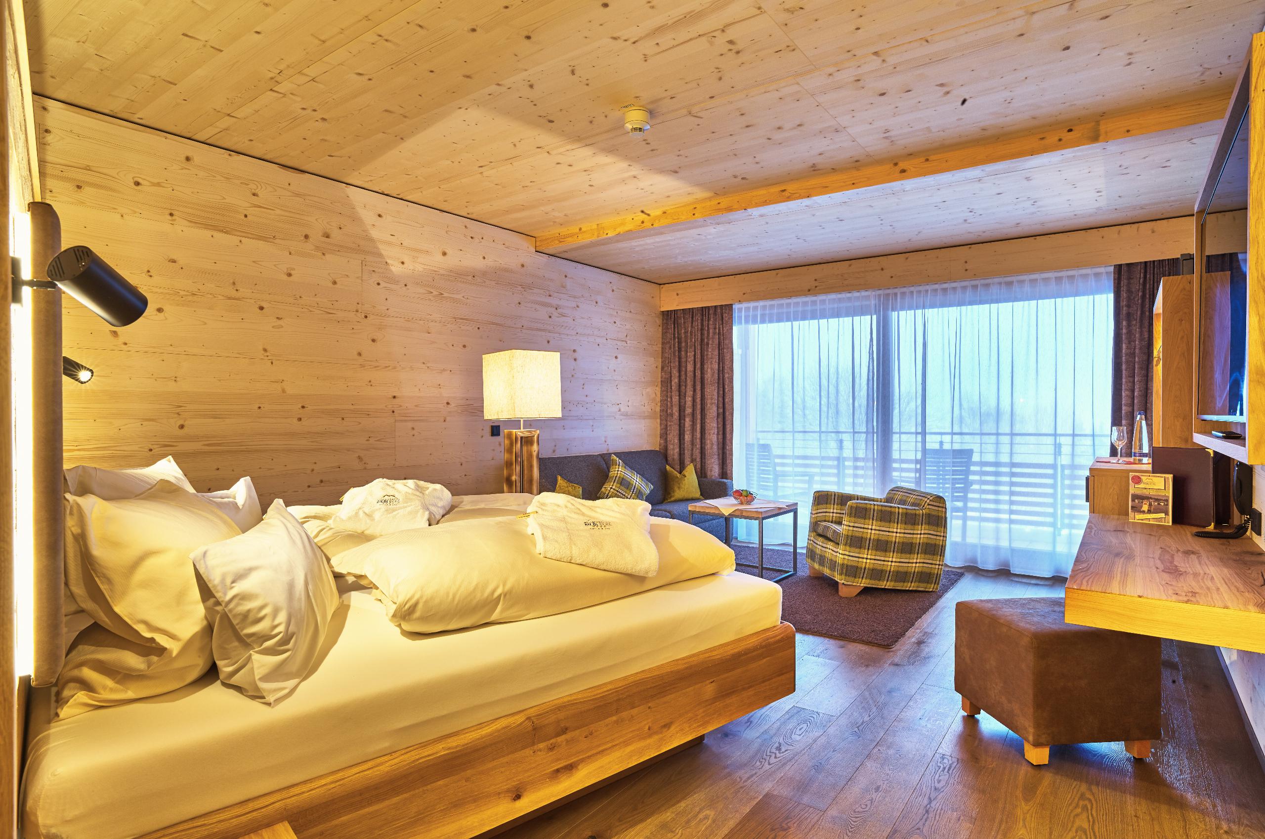 ca. 45qm, geeignet für 1-4 Personen, Talseite, großzügige Dusche, sep. WC, Infrarotsitz, begehbarer Schrank, Kosmetikspiegel, Föhn, Radio, großer Flat-TV (65“ Full-HD TV), Minibar, Safe, Telefon, großer Balkon, Betten: 1,80 x 2,10 m, keine Haustiere gestattet