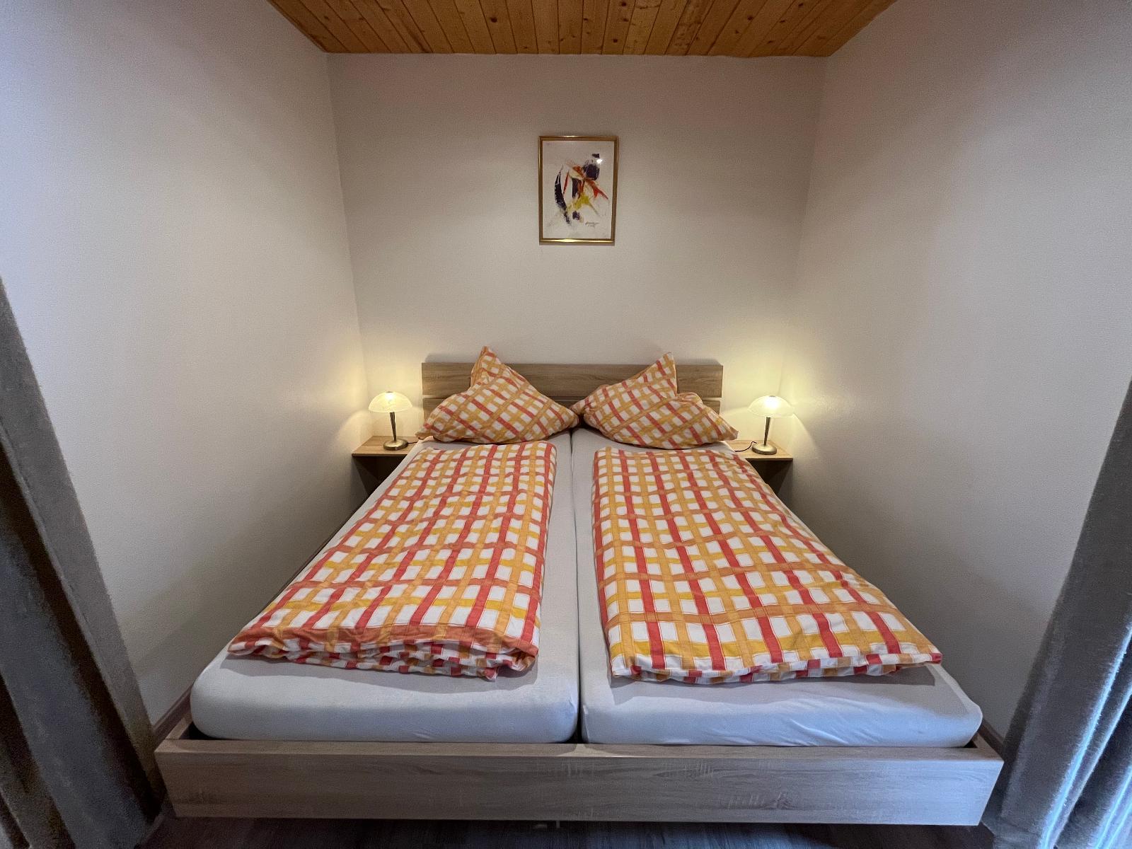 Im Bad mit Dusche und WC finden Sie neben frischen Handtüchern und Badetüchern auch einen Fön. Auch die Betten sind bei Ihrer Ankunft frisch bezogen.