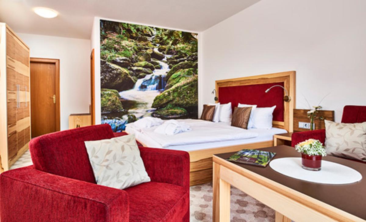 Die geräumig und hellen Zimmer mit gehobener Ausstattung in zeitlich elegantem Design (Teppichboden) im 1. OG gelegen mit Balkon zur Südseite und sehr schöner Aussicht ins Grüne, verfügen über eine Sitzecke mit gemütlicher Schlaf-Couch, schwenkbarem Flat-TV (von Couch und Bett aus einsehbar), Schreibtisch mit Tageslichteinfall, Safe sowie Dusche/WC und Haartrockner